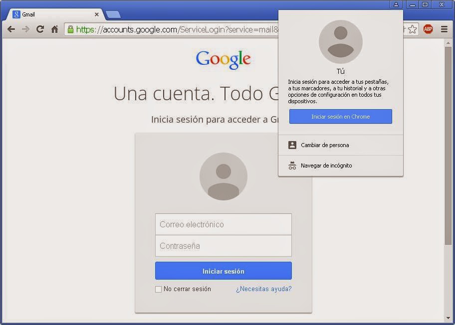 Al decir "iniciada mi sesión", no me refiero a la sesión en Gmail u otro servicio de Google, sino que en el navegador, como muestra la siguiente imagen