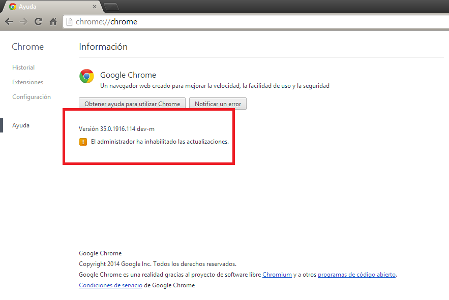 1) Escribe versión de Google Chrome (chrome://version/): 35.0.1916.114 dev-m