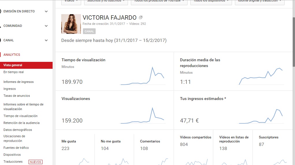 aqui en youtube me sale 47,71 a dia 15