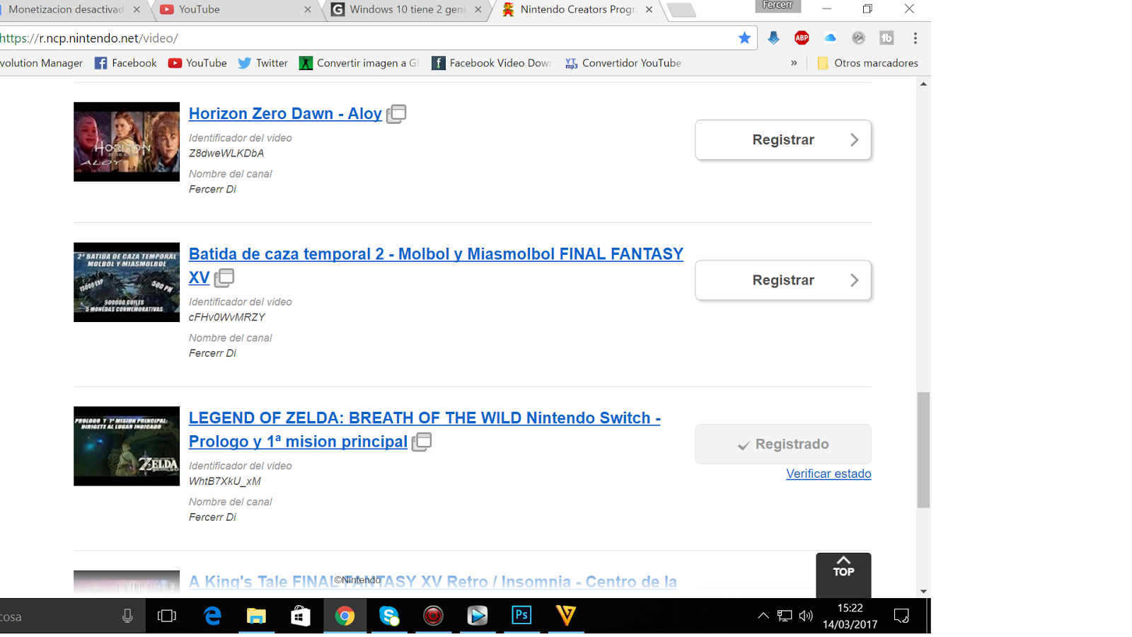 Pero si el video esta registrado correctamente en el programa de creadores (tal y como muestro con la captura) y nintendo me dice que esta bien y que hable con vosotros, ademas hasta el dia de ayer estaba monetizando como el resto de videos que hay en el canal de Nintendo