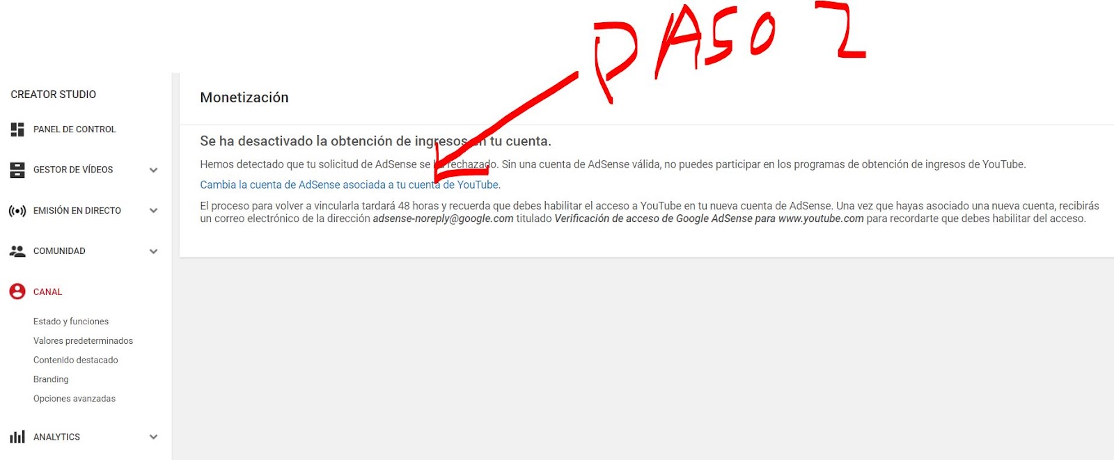 Cree un blog en blogger y trate de monetizarlo con adsense pero no me lo aprobaron y ahora mi canal ya llego a los 10mil view y no puedo habilitar adsense por que la misma cuenta que utilicé para el blog es la misma de mi canal y cada vez que entro a adsense me sale lo siguiente:
