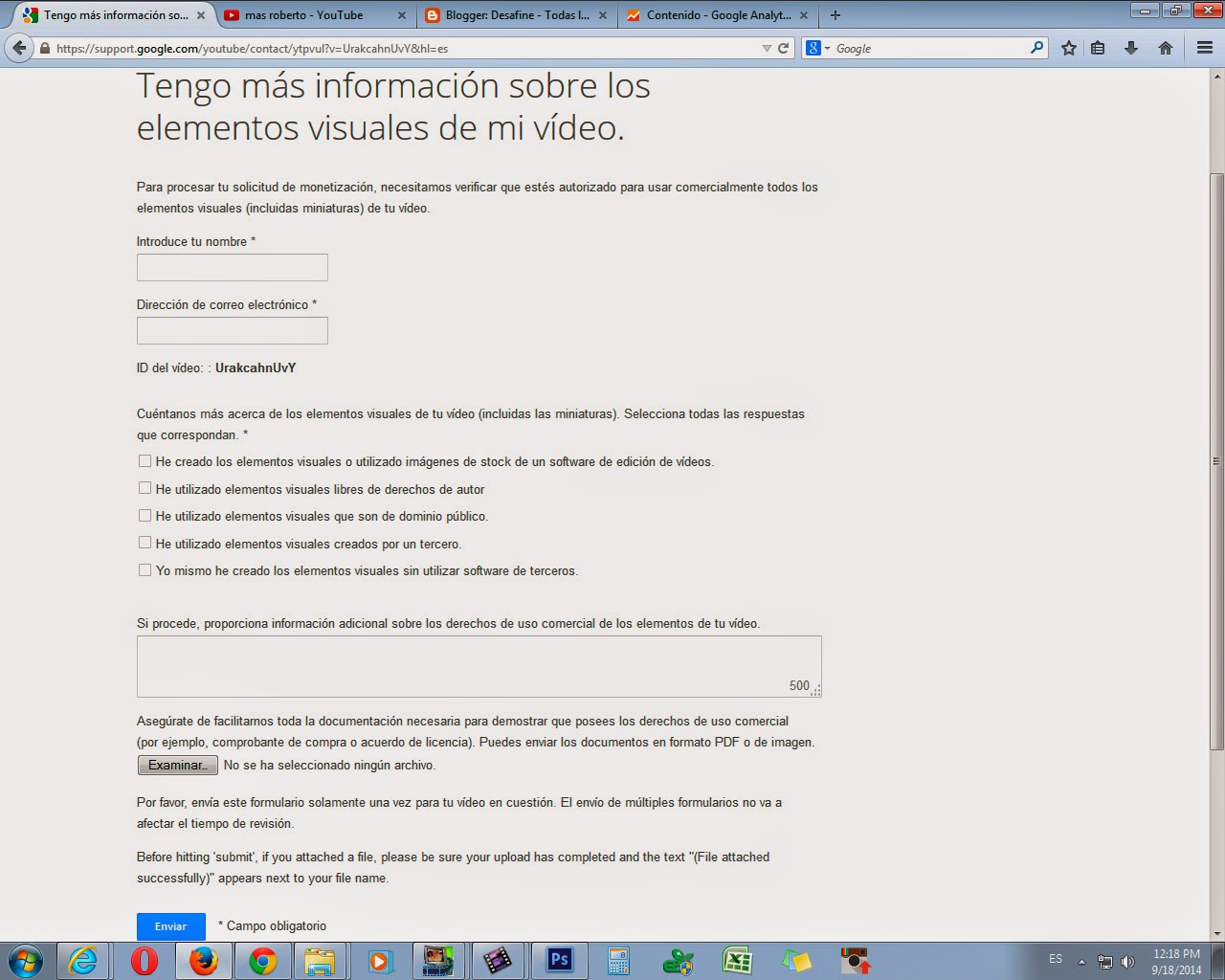 se que me diran que envie la informacion a YouTube, pero que informacion debo enviar para solucionar el problema.