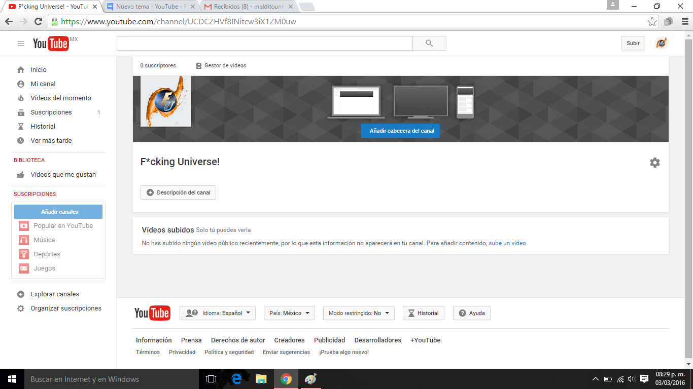 Hola nosotros somos Fernando y Alek, teníamos un canal donde subíamos nuestros videos, pero.... en la mañana del 3 de marzo de 2016 se borró todo y no sabemos lo que pasó. Siempre estuvimos al tanto de las políticas de youtube. Ahora creamos el canal de nuevo pero la pregunta sigue estando ahí.