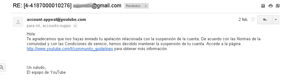 Desde ese entonces cada video que crezca, mi canal es cerrado con la escusa del SPAM y practicas engañosas