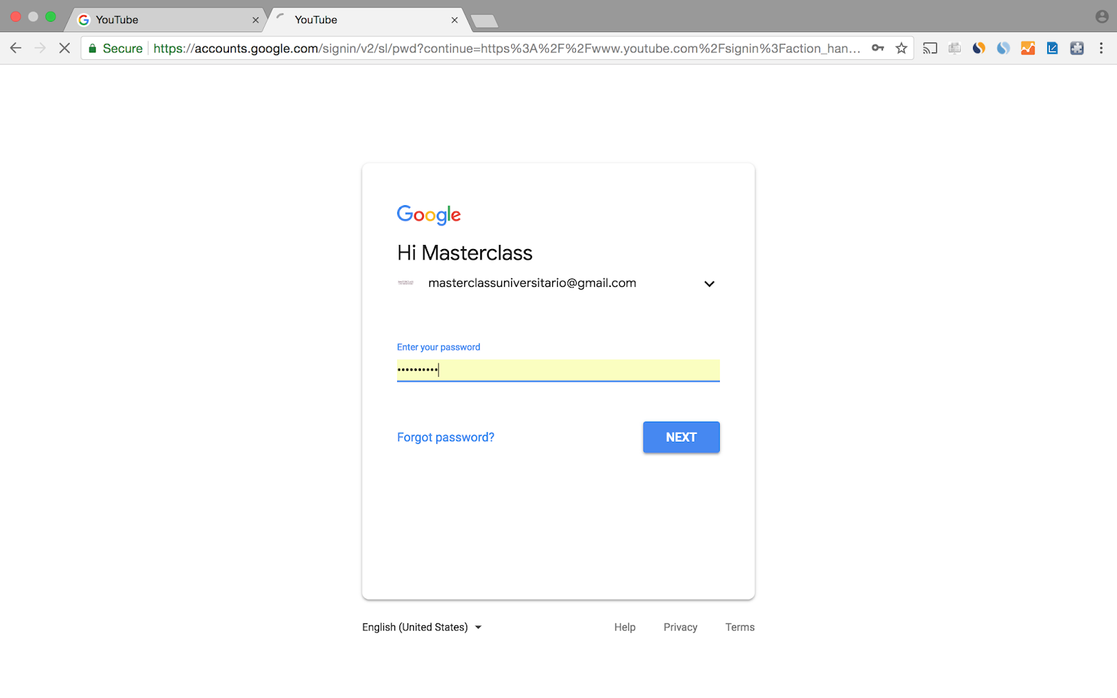 Para acceder se genera la pantalla con mi email, después de indicar NEXT, se genera la pantalla en que reconoce al usuario para que suba la clave de acceso y despliega la clave que está guardada, sin embargo al segundo cierra la pantalla para regresar a la primera pantalla nuevamente con el email. Estoy en un loop sin poder entrar.