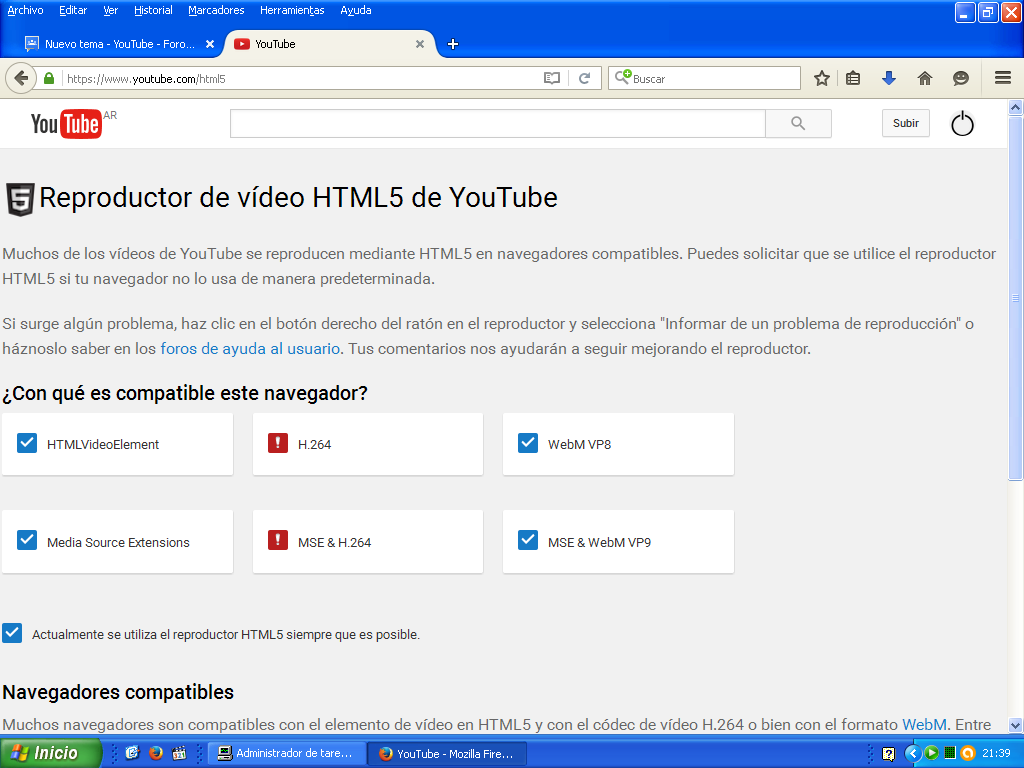 Tengo mozilla firefox 44.0.2 y resulta que en mi android si puedo verlos en otras pc tambien en los telefonos de mis amigos... pero en mi pc personal y la que uso para grabar y subir no puedo verlos!!!