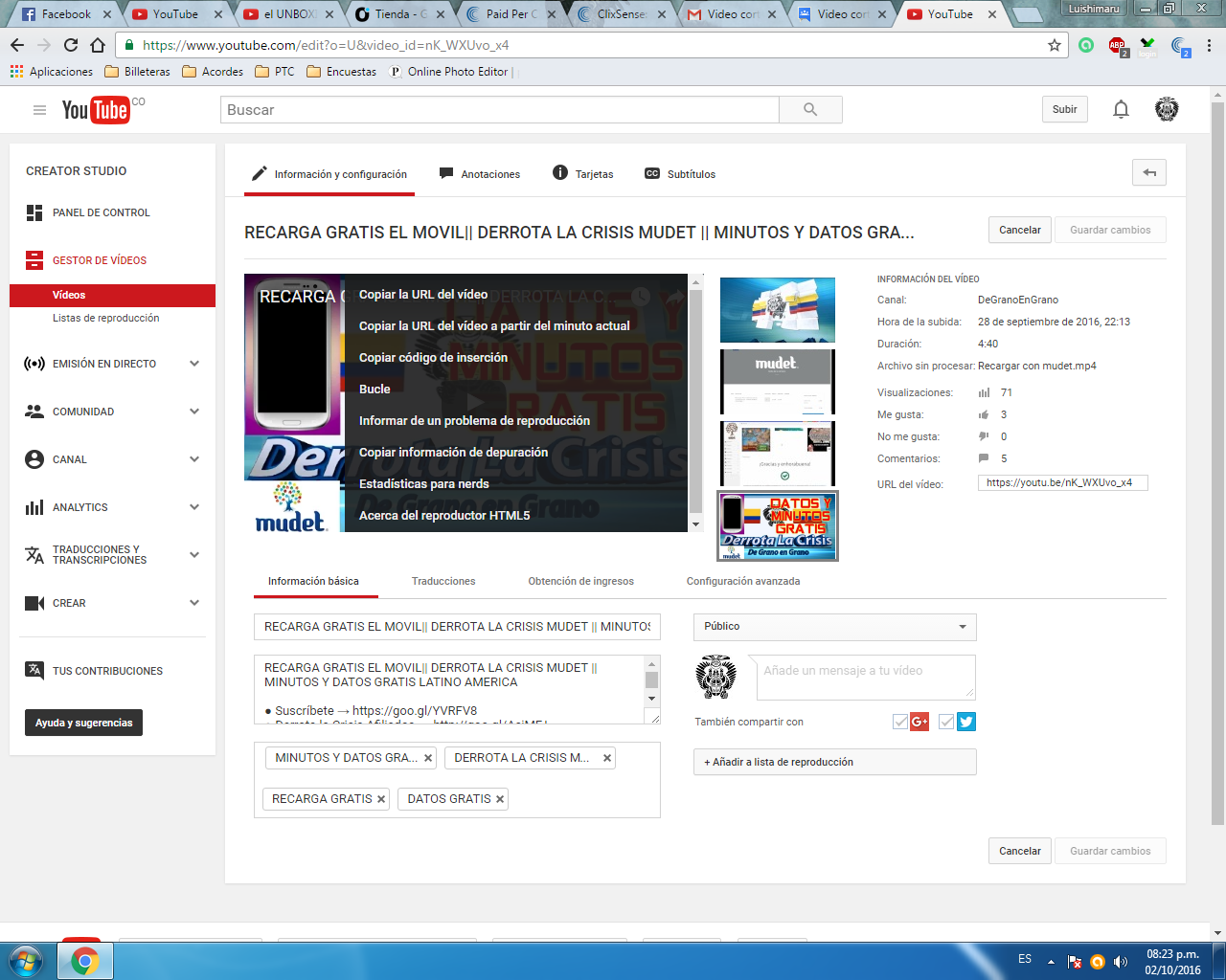 Ya antes habia realizado este proceso con videos mas largos! y nunca ha tardado mas de 1 hora.